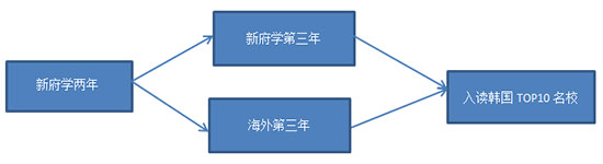 ● 直升国立第一大学——韩国庆北大学直升政策:学生可参加2.5+0.5韩国国立排名第一的庆北大学直升计划(新府学2.5年,庆北大学0.5年),成绩合格的学生可直接入读庆北大学,并且享受优先安排宿舍,提供固定奖学金名额等优待。学生也可申请其他韩国TOP10名校。