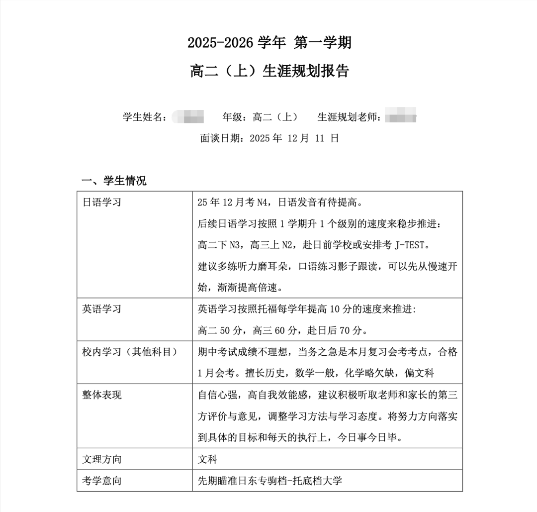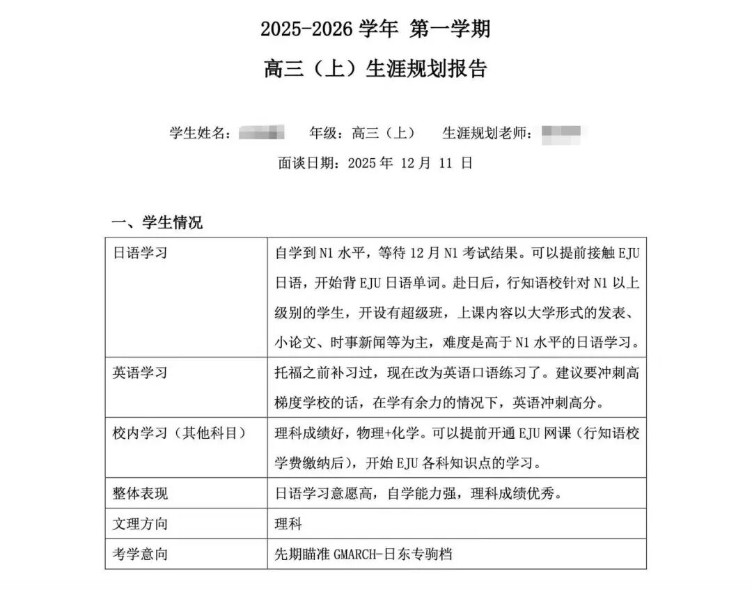 规划讲座结束后,升学指导专家徐老师留校进行为期两天的一对一解答,针对每组家庭、每位学生的具体情况给出最切实详细的建议,并整理成档案,帮助学生们更好的了解自己,为其规划日本大学申请专属升学路线。